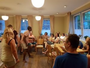 Cameron pak aktivitou, kterou používá při práci s dětmi, účastníky exkurze vtáhl do školní hodiny, běžné výuky angličtiny. Zažili tak, jak přirozenou cestou děti přicházejí o obavy z komunikace v cizím jazyce – angličtině. Ne všichni účastníci exkurze mluví anglicky, ale Cameronovo motto je: podstatná je jakákoliv forma komunikace a především je důležité nebát se dělat chyby!